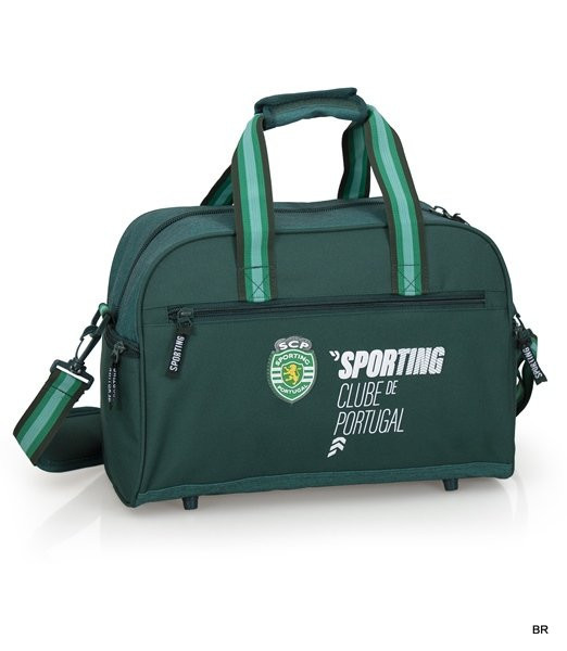 Bolsa de desporto do Sporting Clube de Portugal (SCP) para transportares a tua roupa de ginástica. Tem uma bolsa principal, uma bolsa frontal e duas bolsas laterais com fecho. Tem pega de transporte e alça ajustável para usar ao ombro. Com reforço na base do saco.