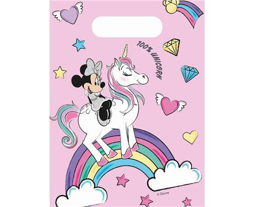 Pack de seis sacos brinde da coleção Minnie Unicórnio. Ideais para guardar pequenas guloseimas e oferecer aos seus convidados na sua festa.