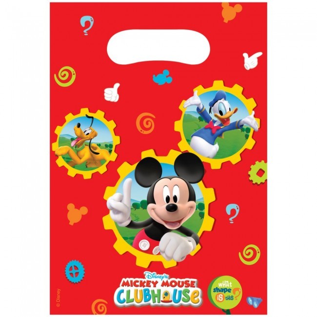 Pack de 6 saquinhos individuais para distribuição de brindes ou guloseimas das festas de aniversário com o adorável Mickey Mouse