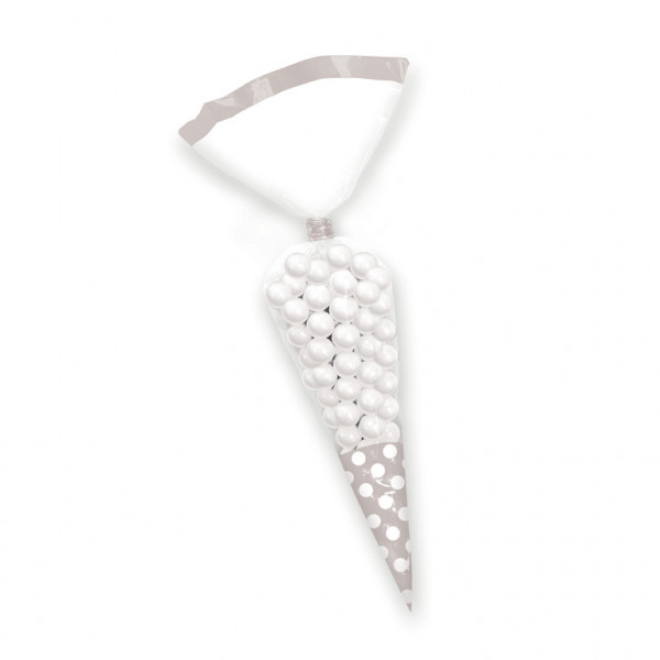 Pack de 10 sacos de plástico cinza em forma de cone com o tamanho de 24.7x12,5cm. Poderá colocar todos os doces nestes sacos e transportá-los confortavelmente.