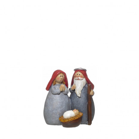 Para decoração de Natal, a Sagrada Família com o menino Jesus, Maria e José em miniatura feito em poliresina.