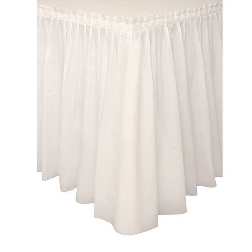 Uma das saias plastificadas para mesas mais glamorosa no tom pérola para decoração de mesas de festas de aniversário, casamentos, batizados ou outros eventos.