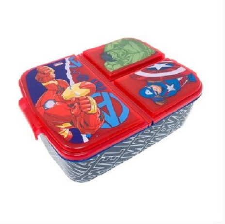 Sanduicheira original e prática dos Vingadores da Marvel com compartimentos para que os meninos possam levar o seu lanche ao parque, à escola ou em qualquer passeio.