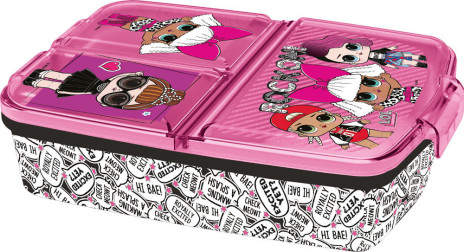 Sanduicheira original e prática das LOL Surprise com compartimentos para que as meninas possam levar o seu lanche ao parque, à escola ou em qualquer passeio.