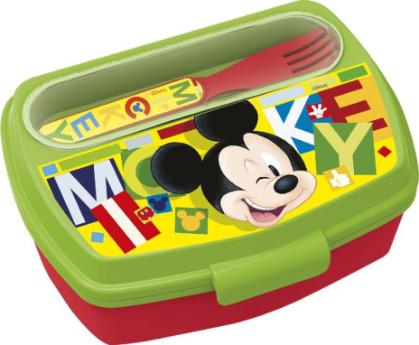 Prática sanduicheira com o tamanho necessário para os meninos levarem o seu lanche. Inclui garfo e colher.