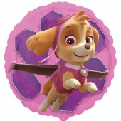 O balão que não pode faltar na festa de anos Skye da série Paw Patrol com diâmetro de 43cm.Em foil, pode ser cheio com ar ou hélio (disponível na nossa loja).As imagens são a frente e verso do balão.
