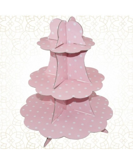 Stand 3 andares Cupcakes Rosa com Bolinhas