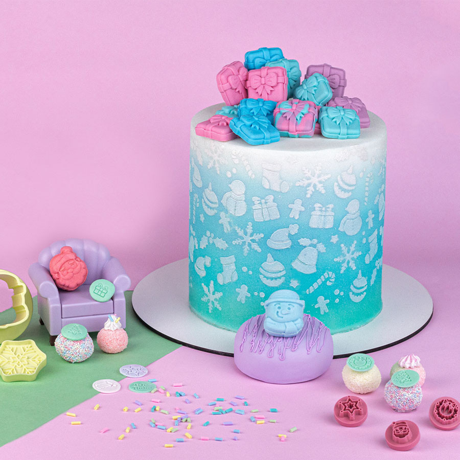 1. Aplique o Stencil sobre a superfície de um bolo/bolacha que já tenha alguma cobertura seca ou firme.