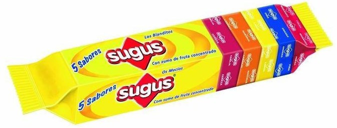 Foram criados com sumo de frutas concentrado e não contém cores artificiais. Embrulhado individualmente, o tamanho de cada sugus é de aproximadamente 2x2 cm.