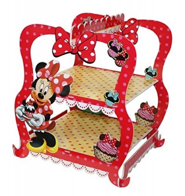 Suporte para os cupcakes em tons de vermelho da Ratinha Minnie da Disney.Torne a festa de aniversário verdadeiramente linda e especial com esta torre de 2 andares muito elegante e original.