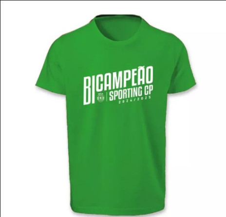 Camisola de manga curta do Sporting Clube de Portugal em verde de Bicampeão 2024/2025.