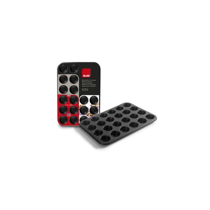Tabuleiro de 38x26cm para 24 mini queques, cupcakes ou muffins de aprox. 3,5cm.