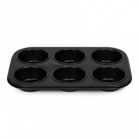 Tabuleiro em aço de alta qualidade com revestimento anti-aderente para fazer 6 cupcakes.