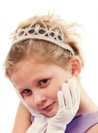 Para adicionar brilho à aniversariante e às amiguinhas, uma linda tiara em prateado para as festas de aniversário das Princesas. Com pedras coloridas.