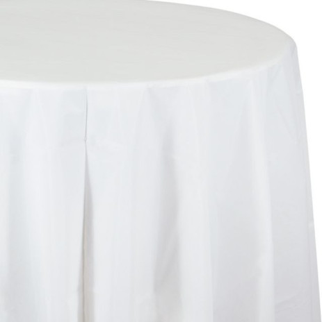 Toalha de mesa em plástico para festa. Inclui uma toalha de mesa redonda com 208cm de diâmetro da marca Creative Converting.