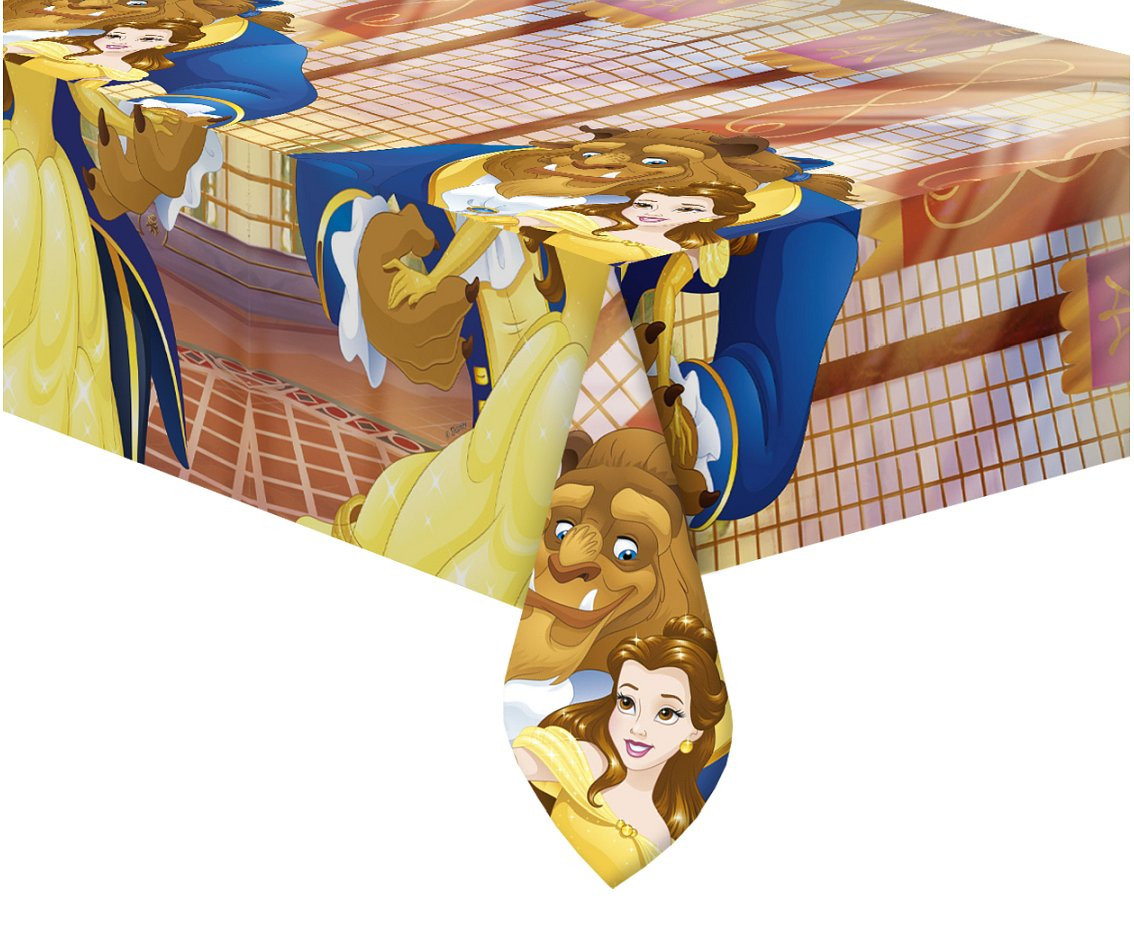 Toalha de festa em plástico das Princesas do filme A Bela e o Monstro com as dimensões de 120x180cm.