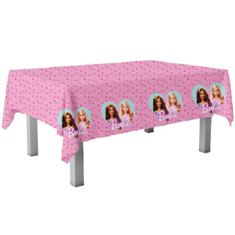 Toalha de plástico da Barbie para a tua festa de aniversário. Temos vários artigos do mesmo tema.