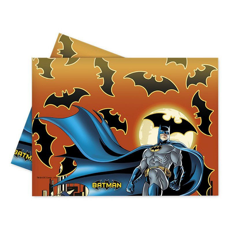 Toalha em plástico para festas de aniversário do super herói Batman da DC Comics. Dimensões: 120x180cm.