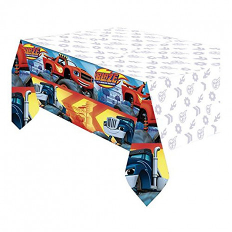 Toalha em plástico com as medidas de 120x180cm para decoração de festas de aniversário do super sonico Blaze e os seus amigos Monster Machines.