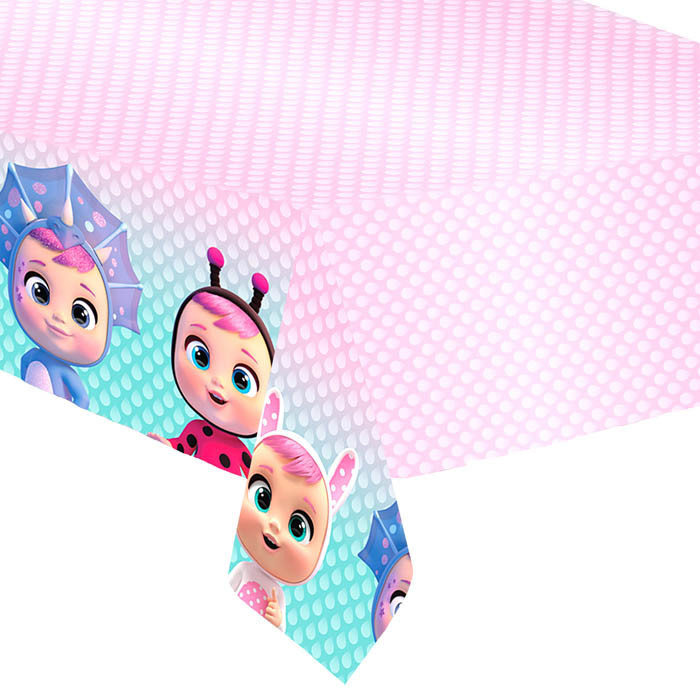 Toalha plástica dos Cry Babies para decoração de festas de aniversário com o mesmo tema.