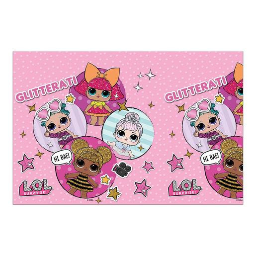 Toalha plástica LOL Surprise para decoração de festas de aniversário com as dimensões de 120x180cm.