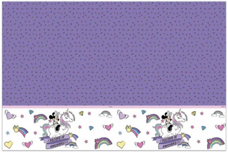 Toalha de plástico da Minnie Unicórnio, para festas temáticas de aniversário com as dimensões de 120x180cm. Ideal para decorares a tua festa com o tema de Minnie Unicórnio.