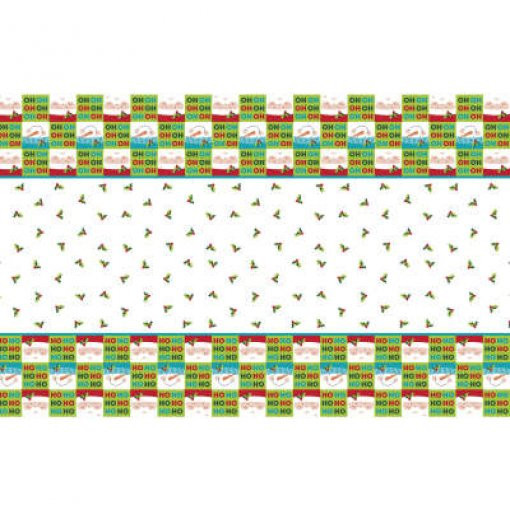 Toalha para decoração da sua festa de natal, com pais natal e azevinho.