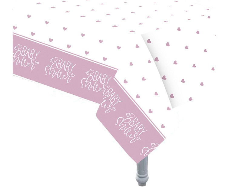 Toalha de mesa para festa em plástico,em tons de rosa e branco com corações, para decoração de baby shower, chá de bebé.