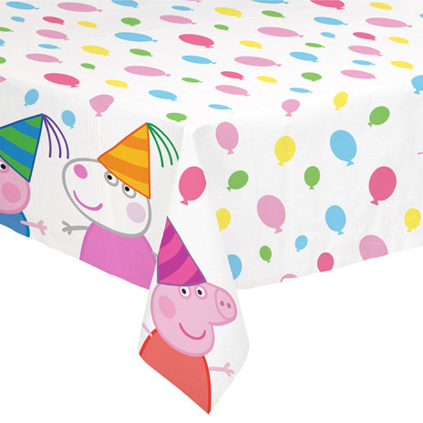 Toalha plástica da Porquinha Peppa para decoração de festas de aniversário com o mesmo tema.