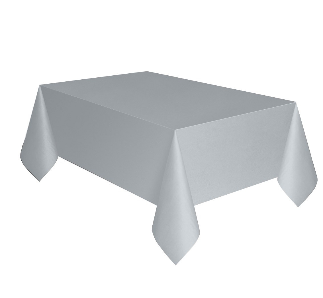 Toalha de plástico na cor Prata para festas de aniversário e outros eventos.