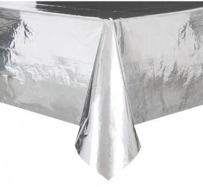 Toalha Festa Prateada Metalizada 2,74 x 1,37 cm