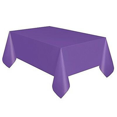 Toalha de plástico retangular na cor roxo neon para festas de aniversário e outros eventos.