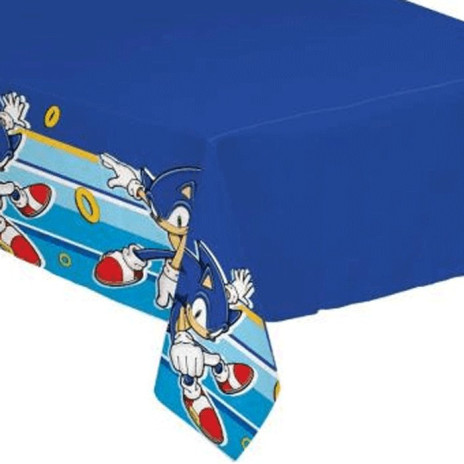 Toalha plástica do Sonic para decoração de festas de aniversário com o mesmo tema.