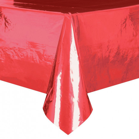 Toalha de plástico na cor vermelho / encarnado metalizado.