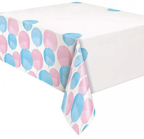 Toalha de plástico para chá de revelação de bebé ou festa baby shower.