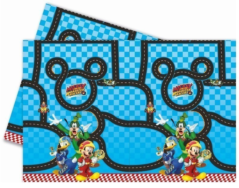 Toalha em plásticos para festas de anos Mickey Super Pilotos ou "Mickey Roadster Racers"Medidas: 120x180 cm.