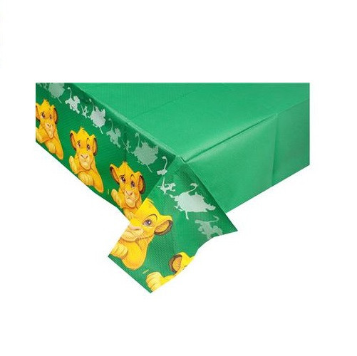 Toalha de festa em papel do filme do Rei Leão com o Simba, com as medidas 120x180cm. Ideal para a decoração da tua mesa de festa de aniversário.