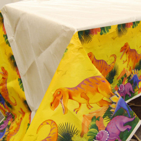 Para decoração de mesa do seu aniversário com o tema dos dinossauros, uma toalha de mesa em plástico da coleção pré histórico.