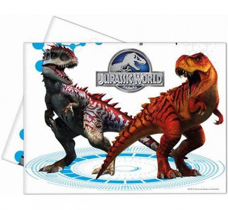 Toalha para a decoração das festas de aniversário sob o tema Parque Jurássico.