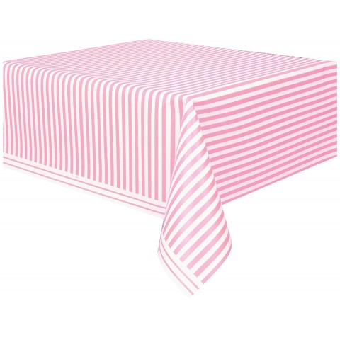 Toalha plástica festa Riscas Rosa e Branco