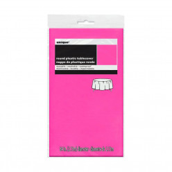 Toalha de plástico em formato redondo de cor rosa neon.
