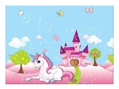 Toalha de mesa em plástico com 120x180cm para decoração das festas de aniversário Unicórnio.
