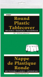 Toalha de plástico em formato redondo de cor verde esmeralda.