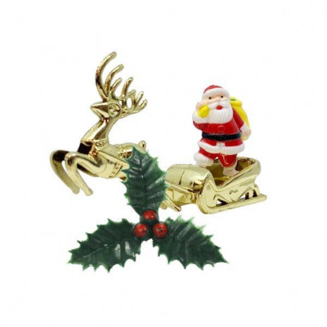 Topo de Bolo para festa de Natal. Inclui um topo de bolo com azevinho e Pai Natal no trenó com rena com cerca de 8cm.