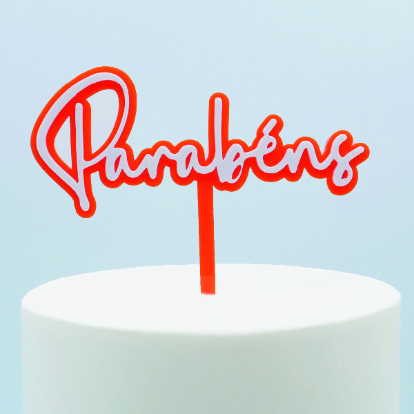 Topper em acrílico com espessura de 3 mm, ideal para decorar o seu bolo.