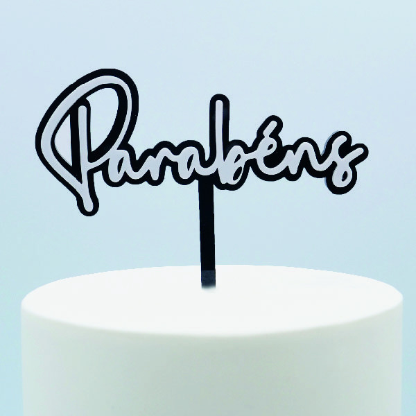 Topper Acrílico Parabéns Preto e Branco