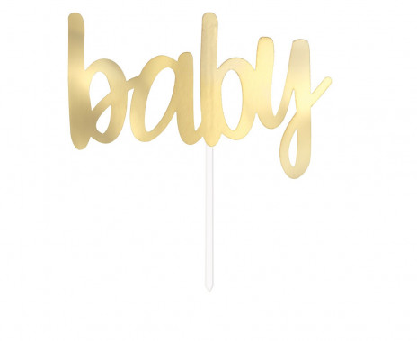 Palito/topper dourado para bolo com 15,2cm. Para adicionar um toque de classe ao seu bolo. A palavra "baby" tem um acabamento dourado brilhante, ideal para qualquer chá de bebé.
