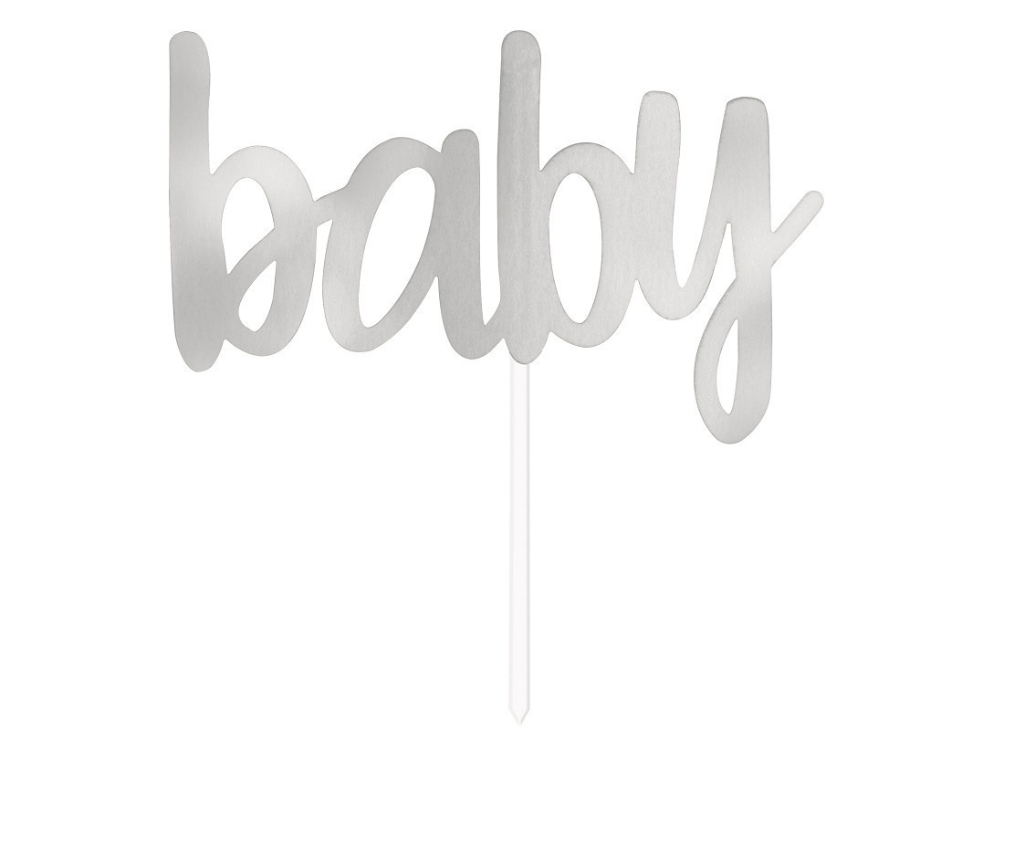 Para adicionar um toque de classe ao seu bolo. A palavra "baby" tem um acabamento prateado brilhante, ideal para qualquer chá de bebé.
