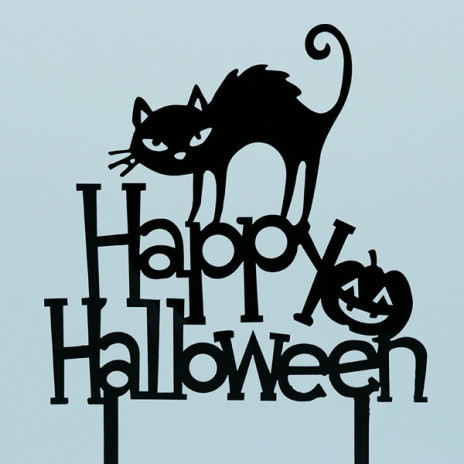 Topper ou topo para bolo com a inscrição "Happy Halloween", em acrílico na cor preta. Artigo resistente fabricado em acrílico ideal para decorar a sua mesa de halloween. É lavável e reutilizável.