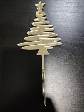 Topper ou topo para bolo de árvore de natal, em acrílico na cor dourada. Artigo resistente fabricado em acrílico ideal para decorar a sua mesa de natal.